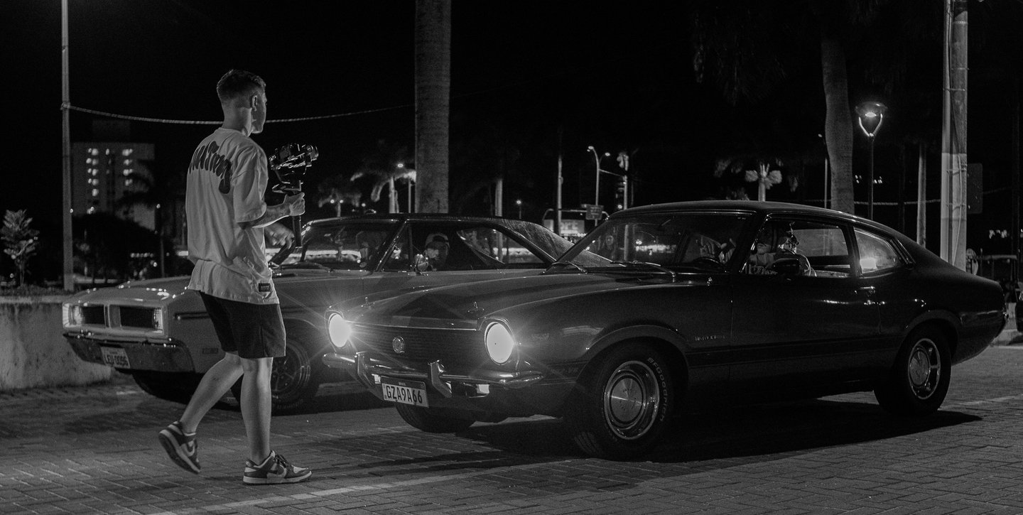 O projeto envolveu um mês de preparação, durante o qual colaboramos com a equipe de marketing da marca para desenvolver o roteiro e encontrar os elementos certos, como carros antigos e cenários que refletissem a estética vintage da coleção. Optamos por montar a produção em uma praça em Brusque, escolhendo um ambiente street wear que combinasse com a identidade da marca.